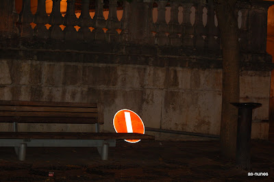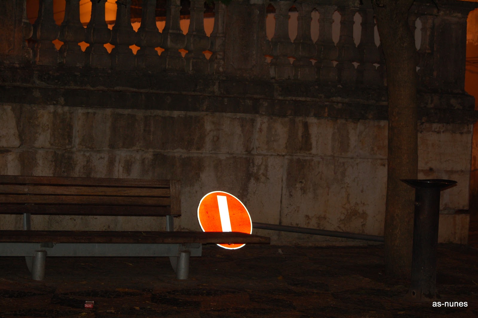 O banco do Largo da Sé... parece que na noite anterior andaram por ali uns vândalos a partirem placas de sinalização. Não sei se sabem que isto é um crime grave.