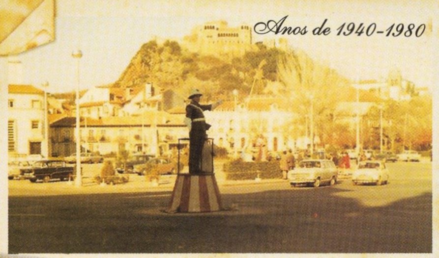 Era assim o cruzamento vital da circulação rodoviária que atravessava Leiria, tal como me lembro dos anos 60 do século passado, quando cheguei a estas paragens, vindo eu diretamente das terras Viseenses e de Viriato. Por aqui passava a Estrada Nacional número um, que ligava Lisboa ao Porto. Quantas peripécias viveram os polícias sinaleiros que prestaram serviço no cimo daquela peanha!