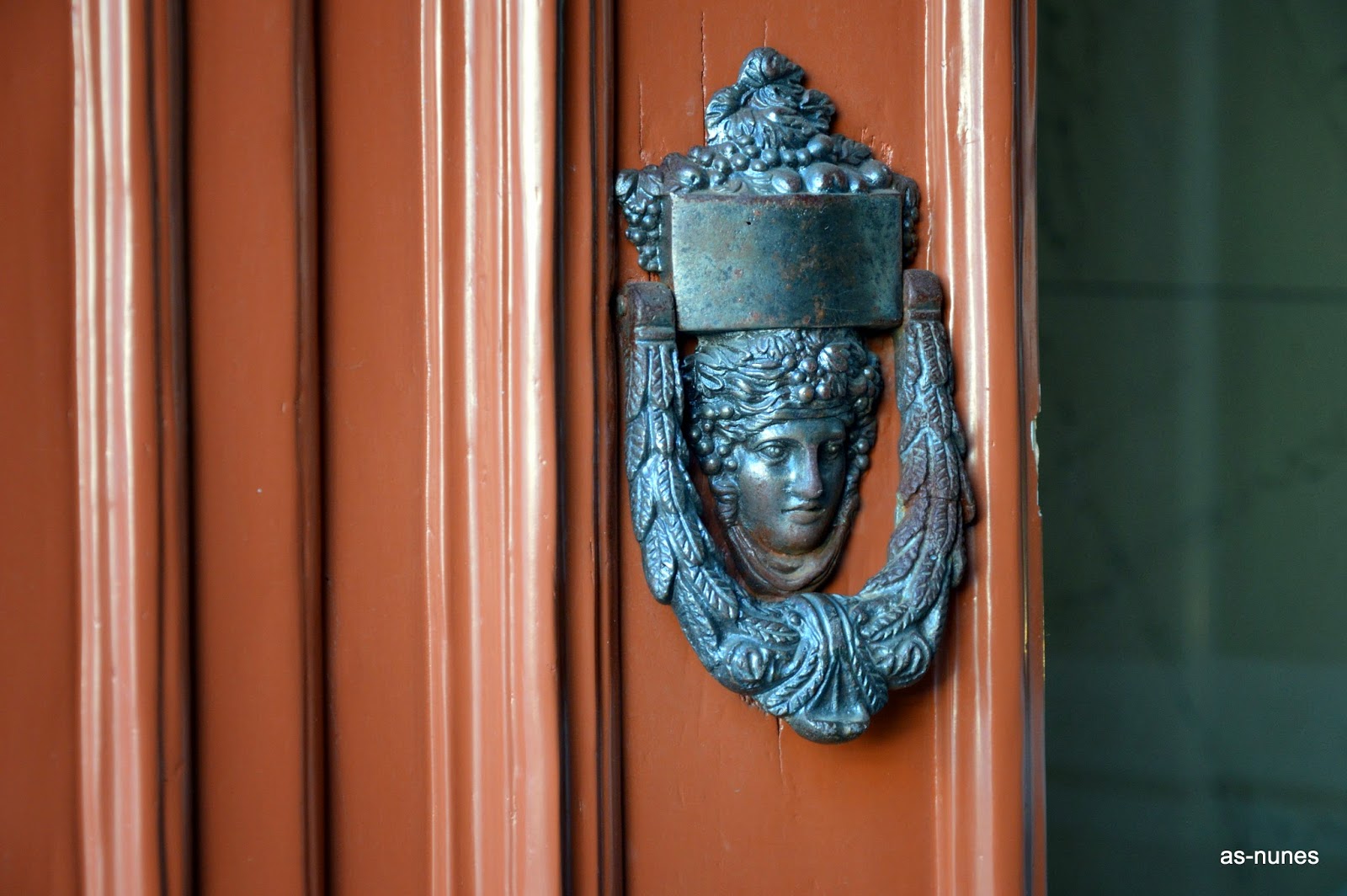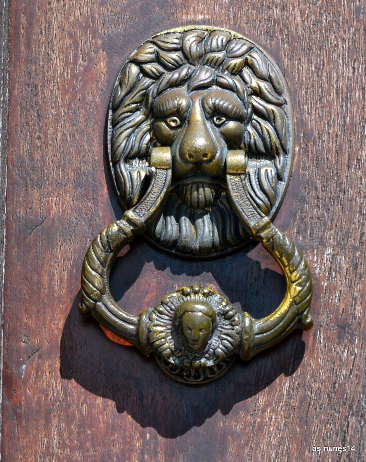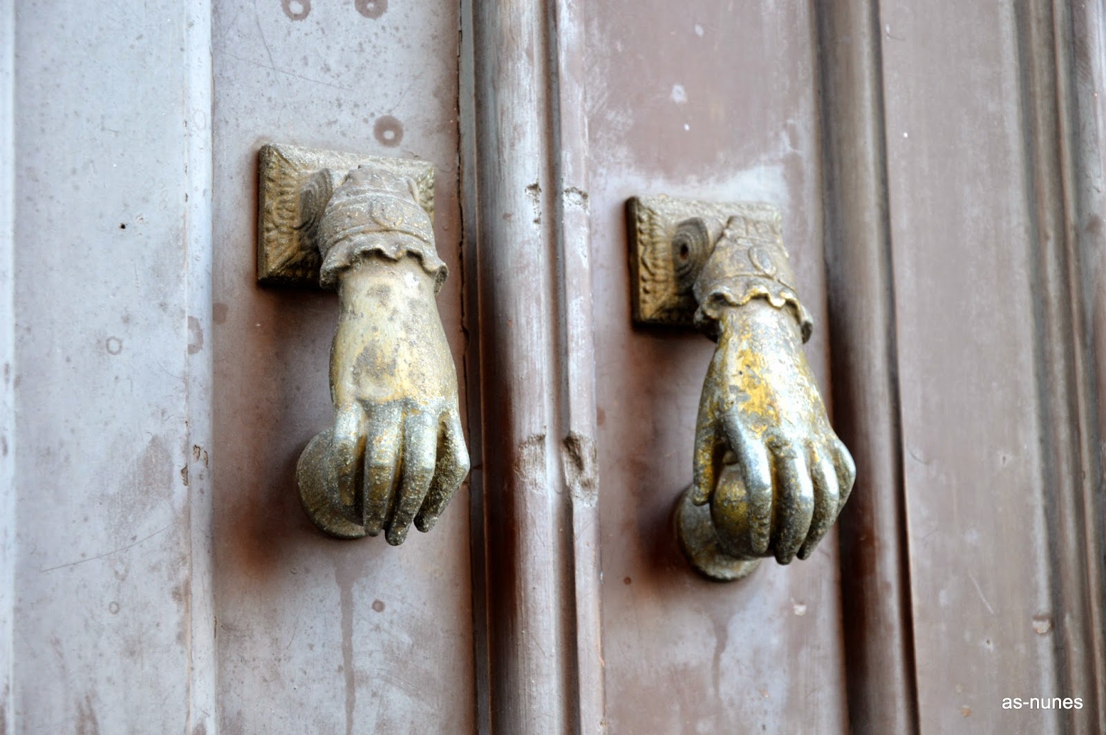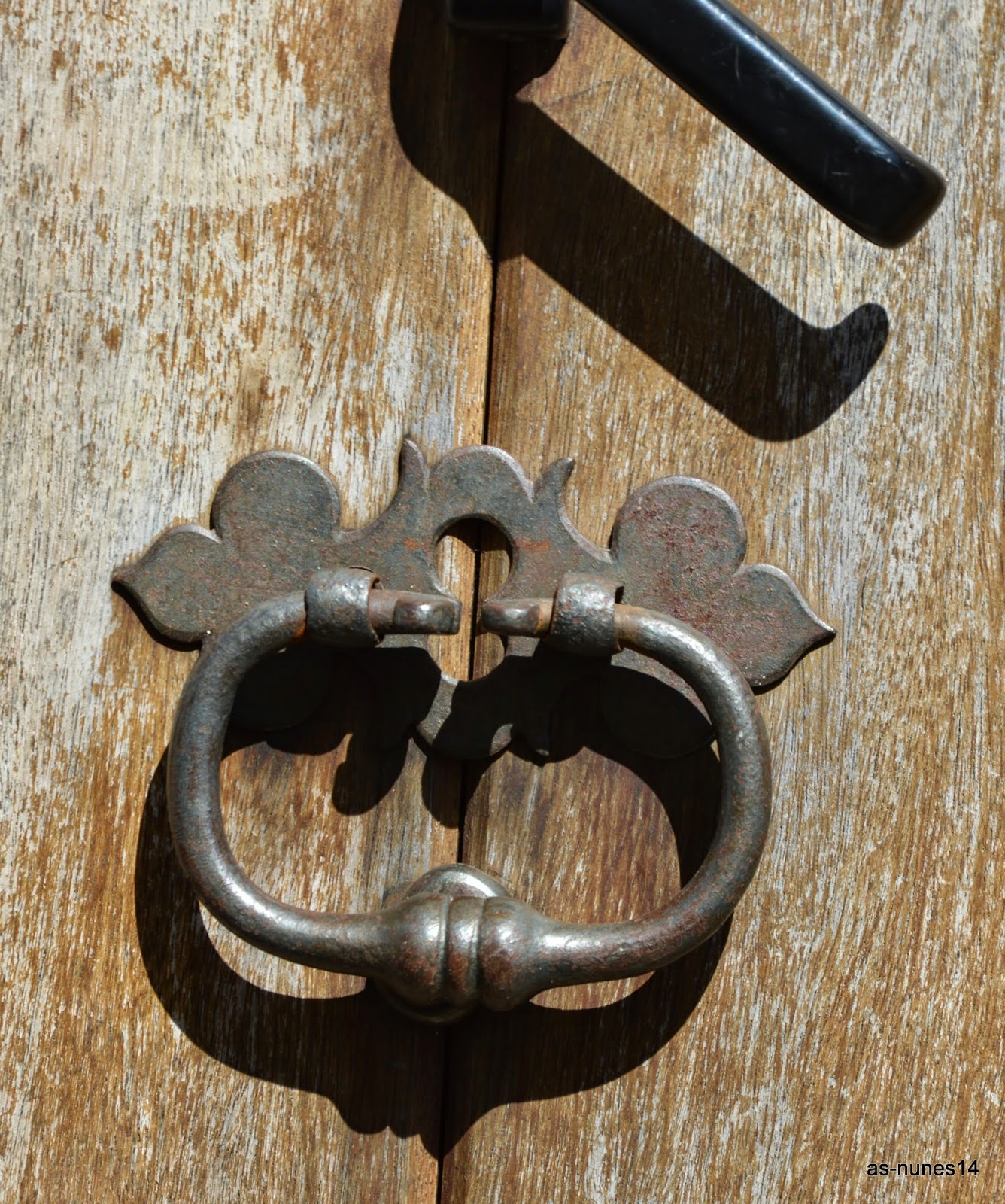 Batentes nas fotos 1,2,5,6 e 11;Aldrabas se rodarem sobre um eixo para abrir a porta nas fotos 4 e 10,há aldabras que também são batentes."