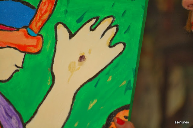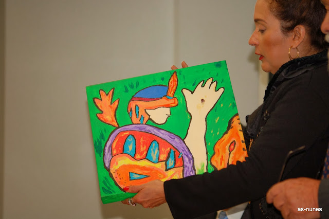 A Dra. Cynthia Roberts a mostrar um quadro que ofereceu ao autor do livro e seu velho e grande amigo, vinda do Brasil...