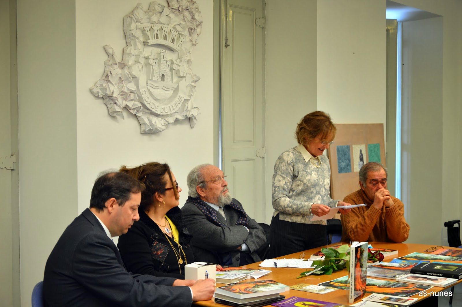 Zaida Paiva Nunes a dizer poemas de Arménio Dos Santos Vasconcelos . Pode ver-se na mesa: Adélio Amaro (editor da Folheto) Cynthia Roberts (Brasileira, procuradora, escritora, pintora, etc.), Arménio Vasconcelos, Celeste Alves (foi quem apresentou magistralmente o livro), Prates Miguel (advogado e escritor de relevo)...